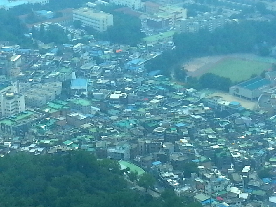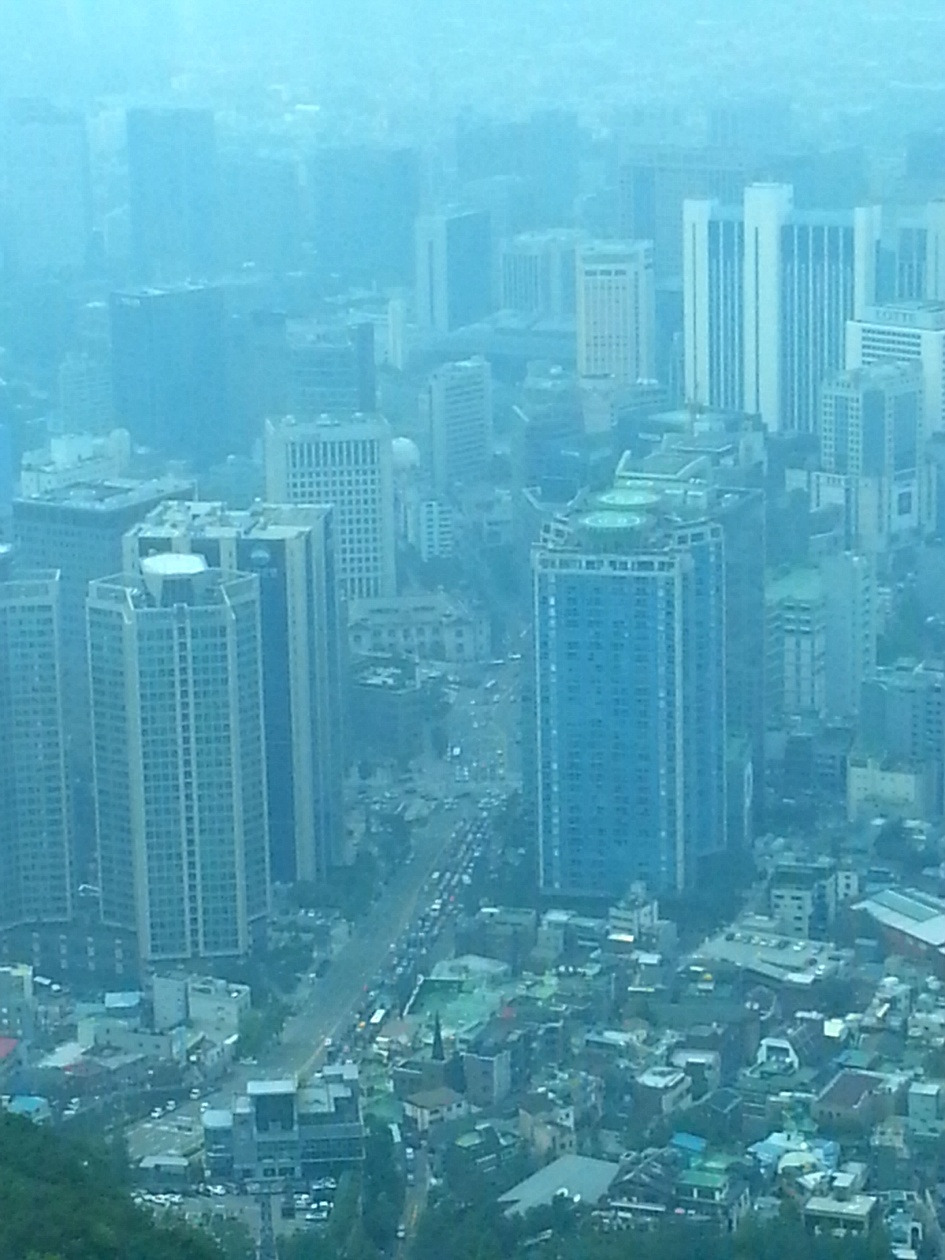 타워를 오르고 내려오는 에리베이트 속 천장에 비춰주는 우주의 영상을 보는 순간 폰 사진 한 장 찍는 동안에 오르고 내리는 속도감 있는 에르베이트였다. 타원에 올라 한 바퀴 돌면서 옛 추억을 더듬으며 서울의 모습을 폰에 담아 본다. 기분이 꼭 파리의 에페탑에 올라 파리 시내를 내려다 보면서 잘 정리된 파리의 모습을 카메라에 줌으로 당기면서 촬영을 하던 기분이 들었다. 상해에서도 전망대에 올라 시내 모습을 카메라에 담던 생각도 머리를 스치며 지나 간다. 분명 오전에는 어제 비가 살짝 내려 하늘이 맑았는데 오후는 스모그인지 황사인지 하늘이 부여 시야가 그리 넓지가 못했다.