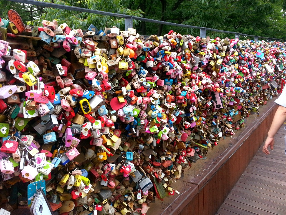 자물쇠를 걸어 놓는 문화는 언제 우리나라에 들어 왔는지 궁금 하였다. 내가 91년도 중국 장가계에 가니 산과 산을 연결하는 다리에 자물쇠가 가득 채워져 있어 신기해 사진에 담아 온적이 있는데 우리나라 남산에도 이곳 저곳에 자물쇠가 가득가득 채워져 있었다. 중궁인들이 채워놓은 것일까? 아니면 국내인들도 채워놓는 것일까? 채워 놓는 이유는 무엇일까? 생각하면서 타워를 올라 본다.