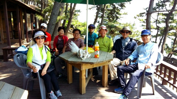 우리 일행은 넓다란 대청마루에 펼쳐진 교자 상에 둘러 않자 늙은이들의 주책이러니! 시워하게 눈 아래로 펼쳐진 바다를 내려다보며준비해 간 주님을 들이키며 닭다리 하나 입으로 물어 뜻이니 이 기분을 신이 나 알으려나?