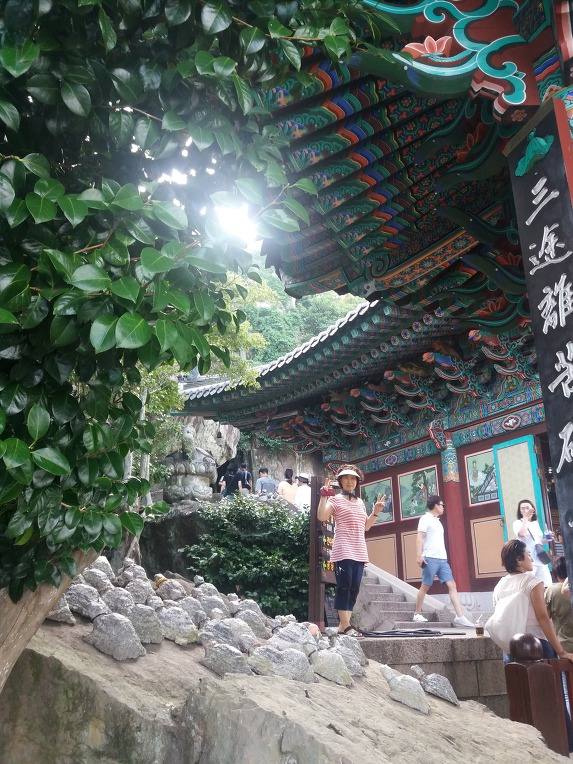 신기항에 돌아오니 오후 4시 숙소로 돌아가기는 너무 이르고 내일 코스로 정한 향일암이 바로 옆에 있는 것 같아 아들에게 조금 무리가 가지만 오늘 돌산 관광은 마치기로 했다. 항일암은 주차장에서 비록 짧은 거리에 있었지만 계단이 쾌 많았다. 비렁길에서 내려올 때 주져않던 아들이 생각보다 잘 걸어줘 이마에 흐르는 땀을 닦아주며 항일암에 올라서니 과히 일품이었다. 사람들이 왜 항일암 항일암 하는지 알 것만 같은 경관이 나타났다. 남해에 있는 금산 보리암 절경에 감탄 했는데 여수 돌산의 항일암은 그에 버금가는 아름다움이엇다. 관음사에 접근하는 과정에서 바위굴을 돌고 도는 맛은 어디에서도 느껴보지 못한 기분이었다. 끝까지 올라온 것이 천만 다행인 것 같다. 20여년전에 차를 끌고와 먼 발치에서 보고 10여년 전에 1월 1일 해돋이를 구경한다고 항일암 앞바다에서 쳐다만 본 향일암을 올라 와 보니 내가 생각했던 것보다 훨씬 아름다운 절경에 시간이 나면 다시 한번 더 와야겠다는 생각을 갖게 되었다.
