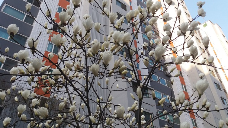 우리집 아파트 단지에서 아름다운 자태를 뽐내는 목련꽃